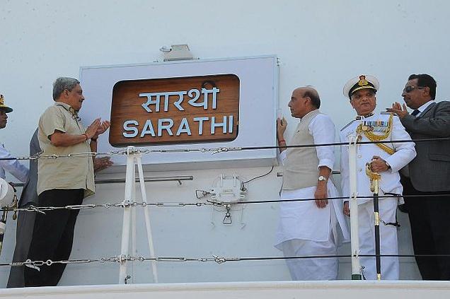 The Indian Coast Guard (ICG) has commissioned well-equipped offshore patrolling (OPV) vessel named ‘Sarathi’. It was commissioned by Union Home Minister Rajnath Singh and Union Defence Minister Manohar Parrikar at Goa Shipyard Ltd (GSL) shipyard at Vasco in south Goa.