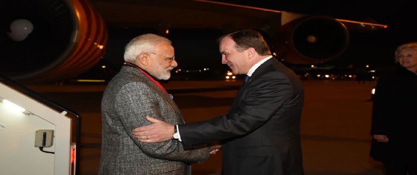 | प्रधानमंत्री नरेंद्र मोदी सोमवार देर रात (भारतीय समानुसार) स्वीडन पहुंचे| यहां स्वीडन के प्रधानमंत्री स्टीफन लॉवेन खुद एयरपोर्ट पहुंचकर पीएम मोदी का स्वागत किया|