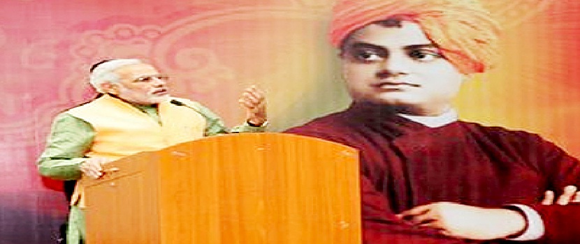 | प्रधानमंत्री नरेंद्र मोदी सोमवार को स्वामी विवेकानंद के शिकागो भाषण की 125 वीं वर्षगांठ के मौके पर और दीनदयाल उपाध्याय के जन्मशती समारोह के तहत विज्ञान भवन में छात्रों के एक सम्मेलन को संबोधित किया| इस मौके पर उन्होंने कहा कि स्वामी विवेकानंद ने विश्व को सही दिशा दिखाने की कोशिश की| इस सम्मेलन का विषय (थीम) यंग इडिया, न्यू इंडिया है|